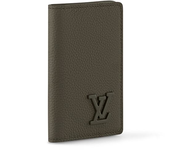 Louis Vuitton’s classic Pocket Organizer joins the LV Aerogram line with this version in soft, supple cowhide dyed an elegant shade of khaki. The “LV” initials in tone-on-tone metal add a refined signature flourish. And inside, it’s an ultra-practical wallet, with multiple compartments to keep everything neatly organized.