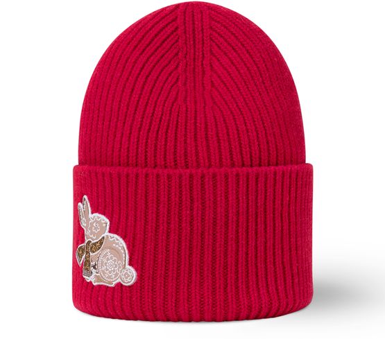 Joining a line dedicated to celebrating the Lunar New Year, the Precious Rabbit beanie symbolizes the Year of the Rabbit. This pure-wool accessory offers casual elegance and warmth in the form of a stylish hat. An embroidered patch made of leather adorns the piece and depicts an endearing bunny wearing a scarf around its neck.
