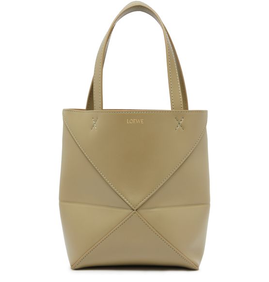 Loewe's Puzzle mini tote bag is a chic accessory made from smooth leather with visible stitching details. It features a front logo, perfect for adding a touch of luxury to any outfit. This mini bag can be worn in the hand for a sophisticated and elegant look.