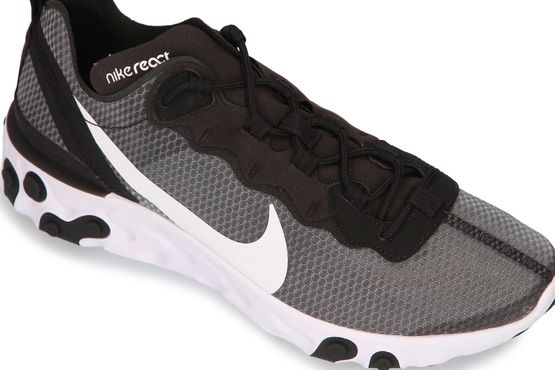 Inspired by classic running shoes, Nike's React Element 55 trainers blend cutting-edge technology with striking motifs. Perfect for street art fans!