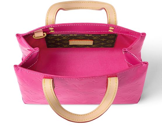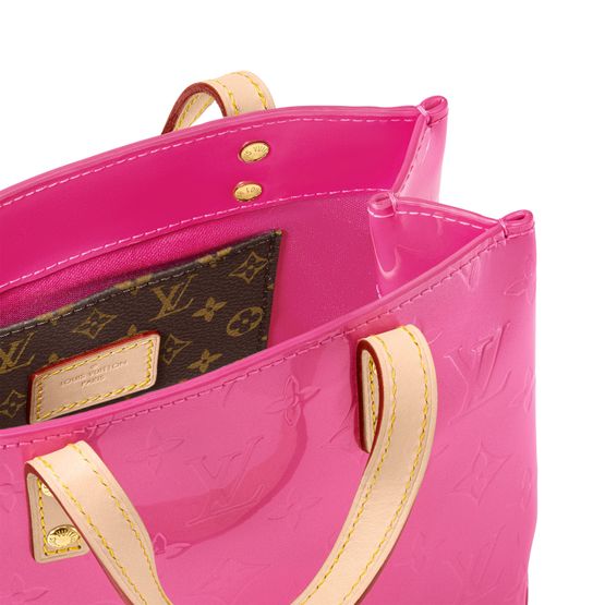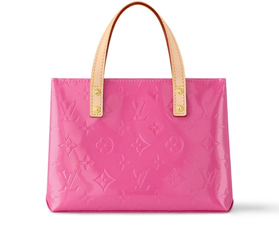 The Reade PM bag is fashioned from shimmery Monogram Vernis leather with natural cowhide-leather top handles and shoulder strap. The pastel colorway, inspired by the Spring-Summer 2000 Collection, perfectly complements the embossed Monogram pattern. This Reade comes with a fashionable hairclip in exactly the same color as the bag.