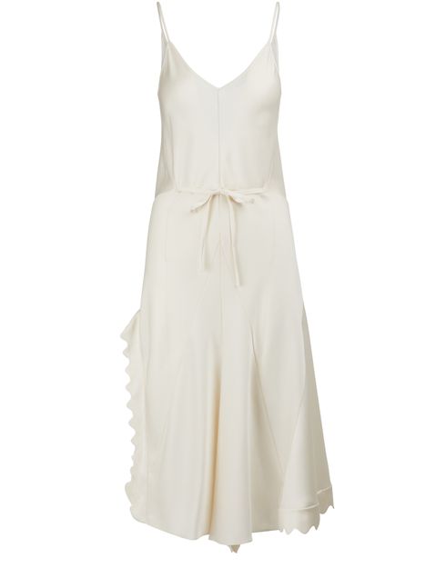 Adopt the nightie dress trend with this satin midi dress from Chloé. Its flowy composition guarantees that it will drape flawlessly along your body, and its lace edges give it an extra touch of glamor. The drawstring at the waist and deep V-neck complete the outfit for a neatly defined and seductive look. Complete it with a short jacket and flat sandals.