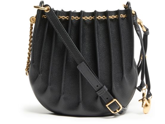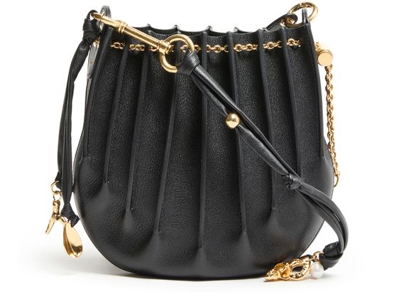 Reveal the Sea Treasures drawstring bag from Chloé, a captivating mini bag boasting a decorative chain strap and sophisticated gold finish. Its adjustable strap offers versatility, allowing it to be worn crossbody or on the shoulder, while a single compartment keeps essentials organized.