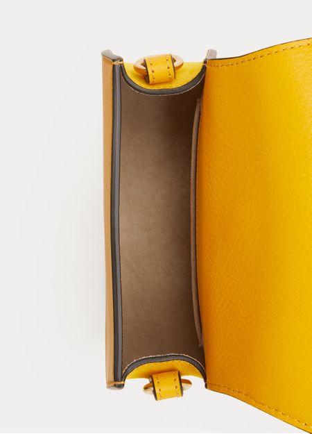 • Description : Mini bag, slender, adjustable, detachable strap, interior pocket, calfskin leather, metal with an aged gold finish, flap closure, press stud fastener, worn in the hand, on the shoulder or crossbody.