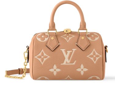 This edition of the Speedy Bandoulière 20 features the House’s iconic Monogram Empreinte leather in a chic neutral palette. It is designed with gleaming gold-toned hardware, including a signature padlock, and is topped with smooth turon handles. The compact shape holds enough space to store a smartphone, wallet and keys – and a couple of makeup items, too.
