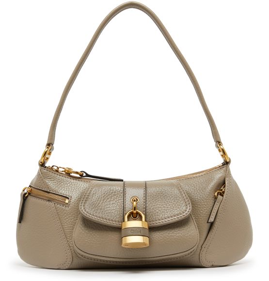 Chloé's 99 shoulder bag showcases a sleek design with a zipper closure and a single compartment for effortless organization. Its gold finish adds a touch of elegance, while the single handle and thin strap allow it to be worn on the shoulder. Interior patch pockets and visible topstitching enhance its charm.