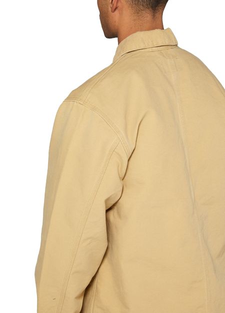 Description : front logo, chest logo, appliquéd logo, logo at the back label, two breast patch pockets, two front pockets, patch pockets, button fastening, front buttoned closure, long-sleeved.