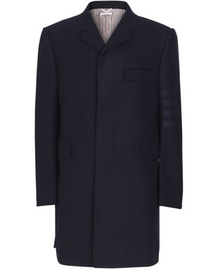 This 4-Bar coat reflects Thom Browne's spirit. With its above-the-knee cut, simple lines and flap pockets, it's a must-have part of a sophisticated look.
