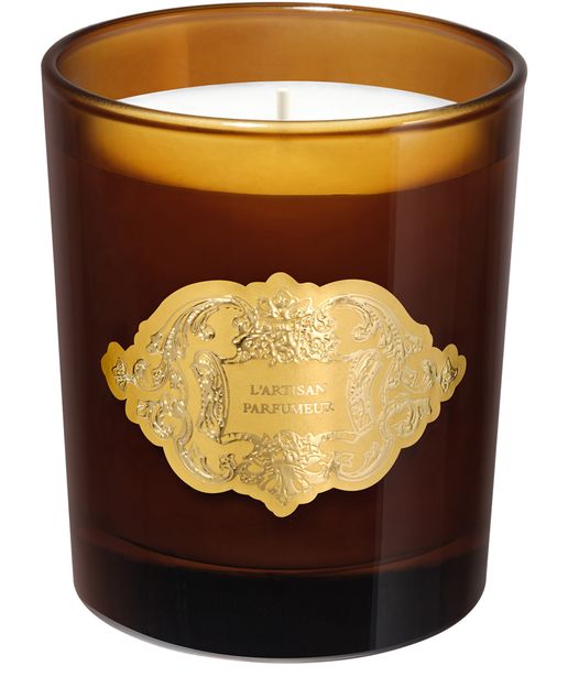 Thanks to L'Artisan Parfumeur's Amber accord, your candle will diffuse a subtle, inviting scent. This Amber candle is made in France and presented in a brown glass holder adorned with a golden coat of arms to add an elegant touch to your decor while diffusing its constant fragrance.