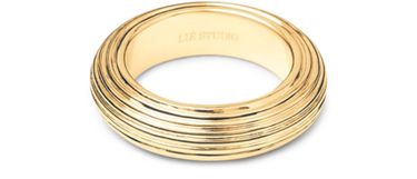 Reveal Lie Studio's Amelia ring, a timeless piece with a radiant gold finish and an engraved logo. This elegant accessory effortlessly elevates any look, making it a refined choice for those who appreciate enduring style and subtle sophistication.