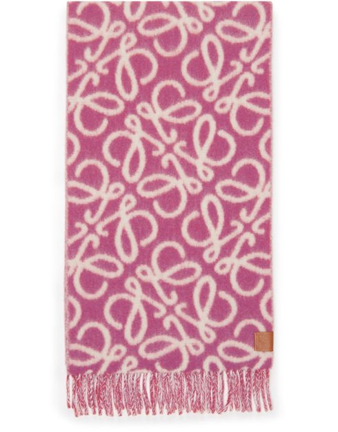 Loewe's Anagram scarf is crafted from warm fabric with fringed edges. Its oversized style is adorned with the iconic printed logo for a chic touch.
