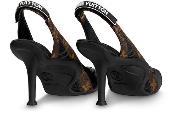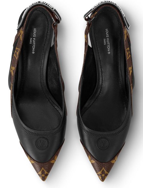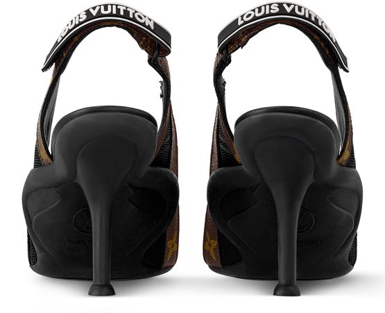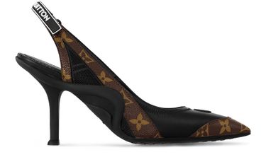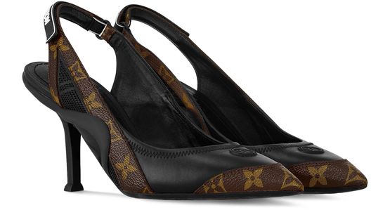 Soft lambskin and patent Monogram canvas are combined with sporty mesh inserts on the Archlight slingback pump, which comes on a high stiletto heel. This elegant model references the cult LV Archlight sneaker, notably its wave-shaped rubber outsole. A contrasting Louis Vuitton signature on the adjustable back strap and a tonal LV Circle on the front complete this design.