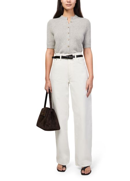 Reveal Khaite's Audrey shoulder bag, crafted from sumptuous suede with a single handle for effortless sophistication. Gold-finish hardware and visible stitching highlight its refined design, while a spacious interior compartment and twist lock closure ensure both style and practicality for modern essentials.