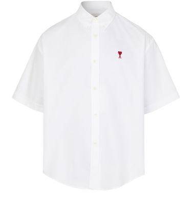 Ami's Boxy fit short-sleeved shirt showcases an embroidered chest logo and logo at the back label. It features a front buttoned closure with button fastening and a buttoned-down collar. The shirt is detailed with embroidered details for a stylish touch.