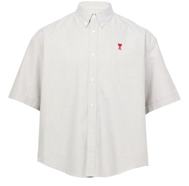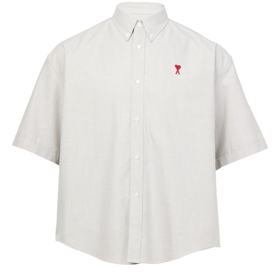 Ami's Boxy fit short-sleeved shirt showcases an embroidered chest logo and logo at the back label. It features a front buttoned closure with button fastening and a buttoned-down collar. The shirt is detailed with embroidered details for a stylish touch.