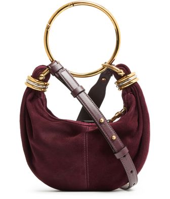 Unveil Chloé's bracelet bag with its versatile charm, from hand carrying to a stylish shoulder wear. The adjustable strap, gold-finish details, and visible topstitching add sophistication. Featuring a logo in gold letters and a single compartment, this bag is both functional and fashionable.