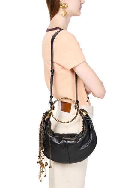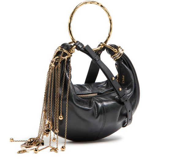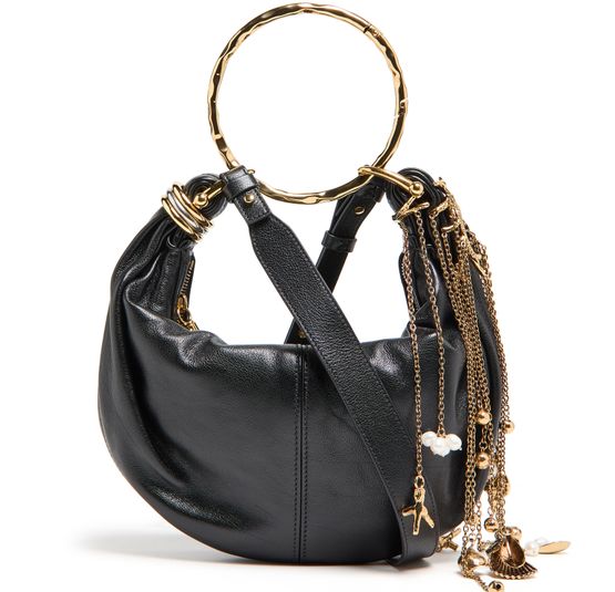 Chloé's Bracelet Bag combines elegance and versatility with its baguette shape and seashell chain detail. Featuring a zipper closure and visible topstitching, it showcases a front logo in gold letters. The single compartment is perfect for essentials, while the adjustable thin strap allows for hand carrying or wearing on the shoulder.