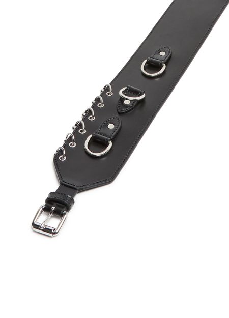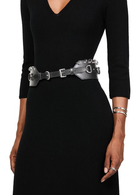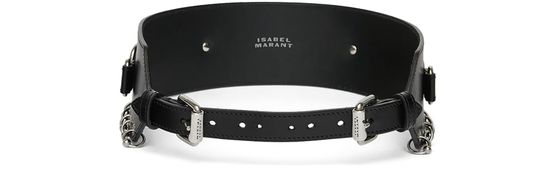 Reveal Isabel Marant's Brighton belt, a stunning wide leather belt with rings belt crafted from smooth leather. Featuring an adjustable clasp and silver-tone hardware, this belt is designed to elevate any ensemble. Its versatile style makes it perfect for both casual and formal occasions, ensuring it becomes a staple in your wardrobe.