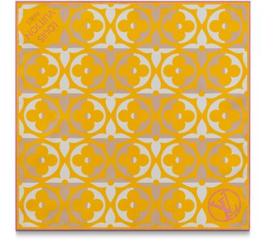 The Chequer Gram square 45 is a vibrant accessory suitable for brightening up casual looks. With its Monogram Flower pattern overlapping with the contrasting chequered background, the graphic design is both graphic and playful. The printed scarf is finished with a Louis Vuitton Paris signature and made from pure silk for a soft feel.