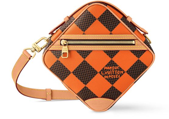Creative Director Pharrell Williams was inspired by the House’s emblematic Damier checks to create the distinctive shape of this Chess Messenger in bright orange Damier Pop canvas. The bag incorporates natural-leather trim, reinforced corners, and a top handle. The removable strap adjusts for cross-body carry. This vibrant colorway is offered exclusively online at louisvuitton.com.