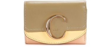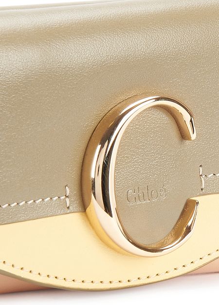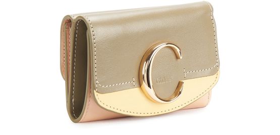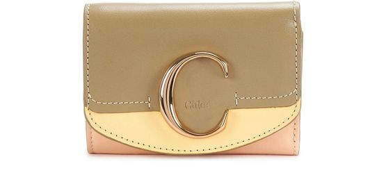 Layered calfskin leather in different shades adds depth to Chloé's Chloé C wallet, branded with a golden initial on the front.