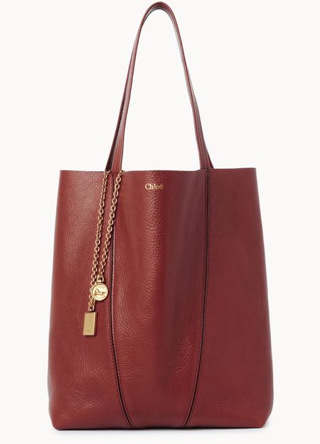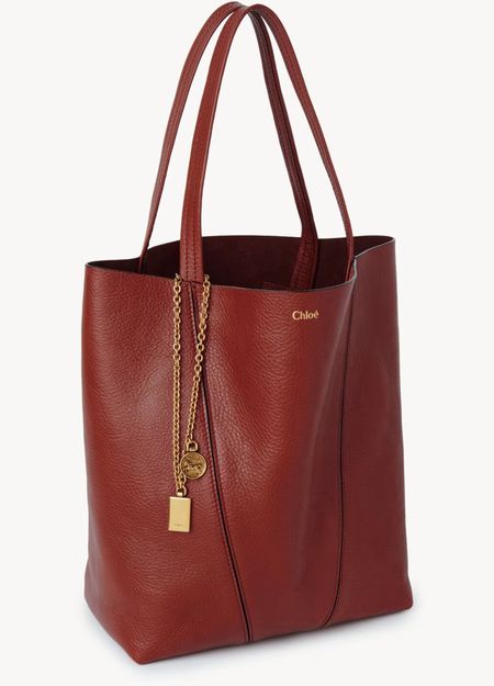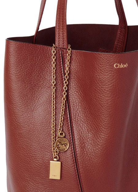Reveal Chloe's Spin grained leather tote bag, crafted from supple grained leather with double handles for effortless carrying. Gold-tone charms and a front logo in gold letters add refined detail, while visible stitching and a spacious interior compartment ensure both style and practicality.