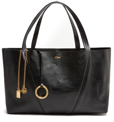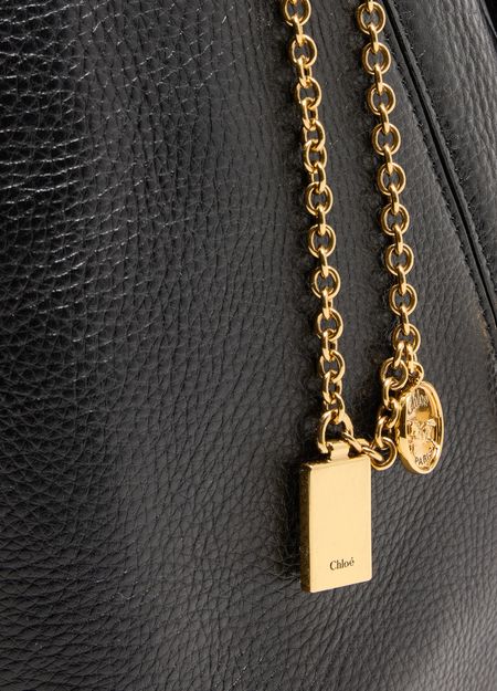 Reveal Chloé's Spin tote bag, crafted from grained leather and adorned with a signature 'Spin' fastener. The gold-finish metal horse medallion and front logo in gold letters add refined detail, while double handles and a spacious interior compartment ensure both style and practicality.