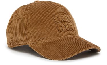Miu Miu's Corduroy cap features a round crown and curved visor for a classic look. The embroidered logo on the front adds a touch of elegance, while the visible stitching adds a subtle detail. Perfect for adding a stylish touch to any outfit.