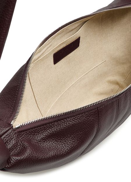Reveal Lemaire's Croissant medium bag, crafted from grained leather with a padded texture for a refined touch. The single handle and zipper closure offer effortless sophistication, while the contrast lining and open interior pocket ensure both style and practicality in every detail.