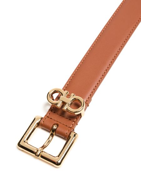 Reveal Ferragamo's Donna H25 belt, a statement of elegance with its adjustable clasp and gold-lettered logo. Crafted from premium leather, this belt features exquisite gold-tone hardware, perfect for accentuating your ensemble when worn on the hips.