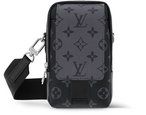 The Double Phone Pouch is the contemporary way to keep smartphones, earbuds, credit cards and other small personal items close at hand. Styled in Monogram Eclipse Reverse canvas for a sporty, on-trend signature look, it doubles as a wallet without the removable strap. A clever everyday companion, perfect for the man who needs multiple phones.