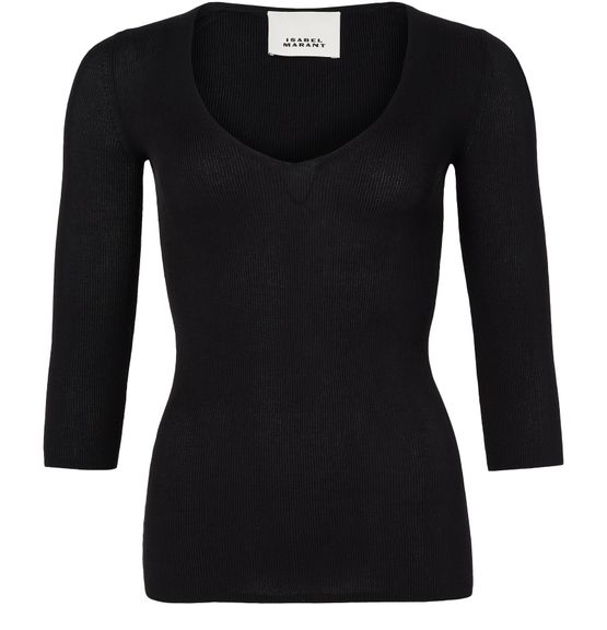 Introducing Isabel Marant's Felicia three-quarter-sleeved top, a masterpiece in knitwear. This slim fit piece features a ribbed texture, enhancing its sleek silhouette. The round neck and three-quarter sleeves add a touch of elegance, making it perfect for both casual and formal occasions.