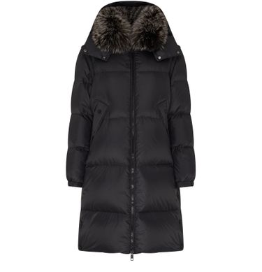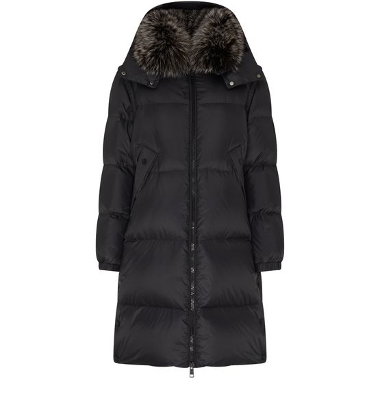 • Description : zipper closure, fur detail, knee length, hood, side welt pockets, long-sleeved, puffer.