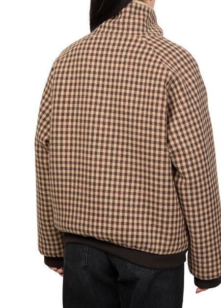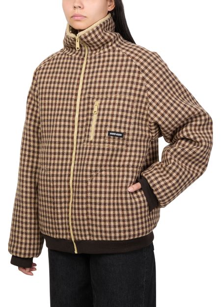 Introducing Miu Miu's fur coat, a masterpiece of modern elegance. This regular fit, short-length coat features a striking houndstooth pattern, complemented by a practical zipper closure. Long sleeves and zipped breast pockets add functionality, while side pockets enhance its versatile appeal. Perfect for any occasion, this coat redefines style.
