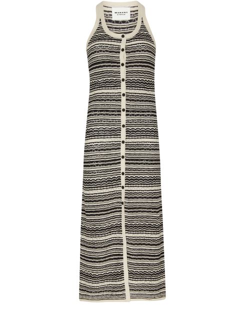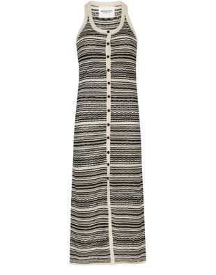 Etoile Isabel Marant's Haroya midi dress is a stylish knitted dress designed for effortless elegance. Featuring a front buttoned closure and button fastening, this dress offers versatility. Its round neck and shoulder straps create a flattering silhouette, while the logo at the back label adds a touch of sophistication.
