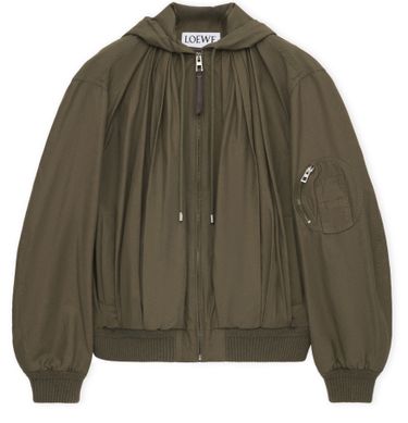 Reveal Loewe's short casual jacket, crafted with a high neck and long sleeves for a sleek silhouette. The zipper closure and practical side pockets add modern functionality, while patch pockets offer a refined touch. Effortlessly versatile, this piece transitions from day to night with ease.