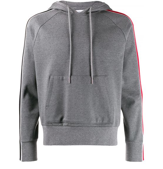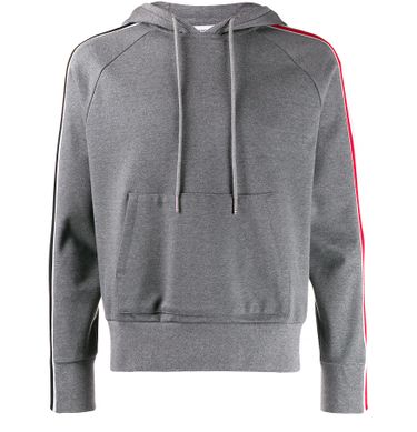 Thom Browne presents a hooded sweatshirt with classic lines, modernised by colourful bands that run from the base of the neck to your wrists.