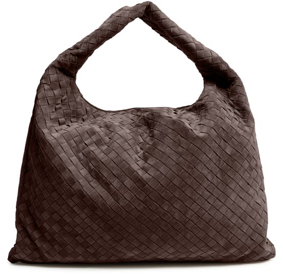 • Description : Hobo bag, shoulder bag, intrecciato weaving technique, single handle, leather handle, suede, zippered interior pocket, padded texture.