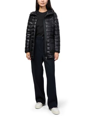 Reveal Moncler's Jasmin puffer jacket, crafted for a sleek, modern look. The short, long-sleeved silhouette features a high neck, zipper closure, and flap pockets. Topstitched edges and a triangle logo on the side add signature detail, making it a versatile piece for any occasion.