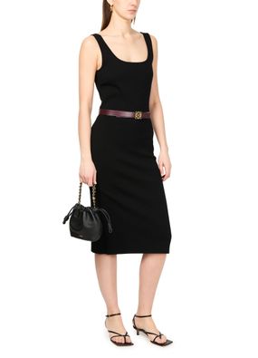 Loewe's Leather Mini Flamenco Purse is a hand-carried small bucket bag with a thin strap and single handle. It has a drawstring closure and magnetic closure for security. The single compartment is adorned with a logo in gold letters, with a printed logo on the front and a gold finish for added elegance.