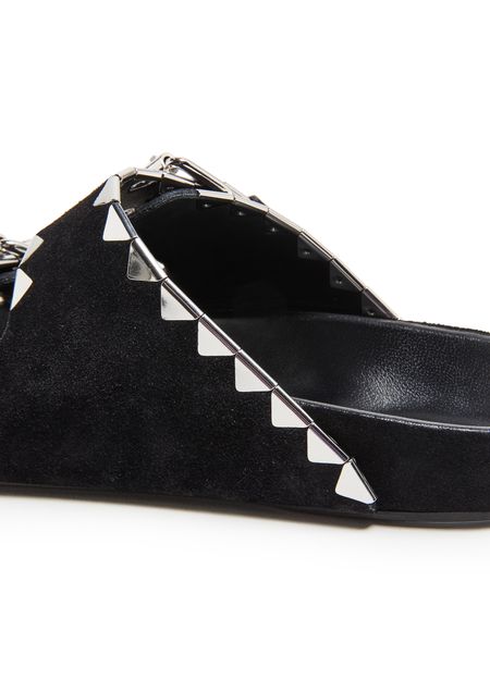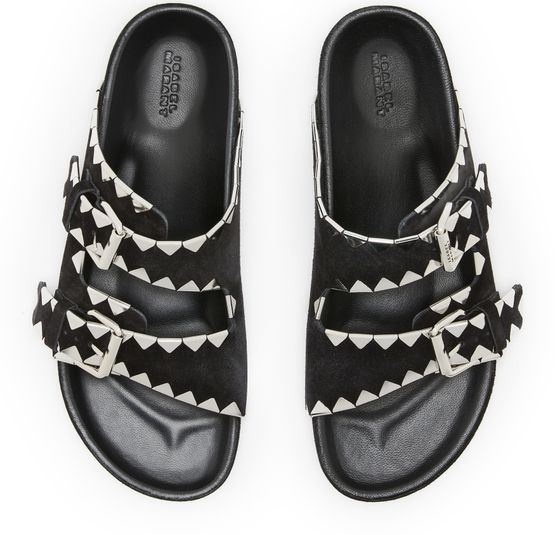 • Description : visible stitching, sandals & slides, logo-printed insole, open round toe, open.