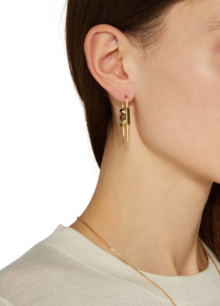 Givenchy'sLock Mini earrings are a stylish accessory that adds a touch of elegance to any outfit. Sold as a pair, these earrings feature a sleek gold finish that exudes luxury and sophistication. The lock design adds a modern twist to a classic piece, making it a versatile and timeless addition to your jewelry collection.