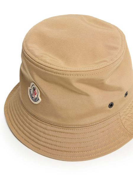 Introducing Moncler's logo bucket hat, a stylish addition to any wardrobe. This bucket hat features a prominent logo at the front, a round crown, and visible stitching, embodying a modern yet timeless appeal.