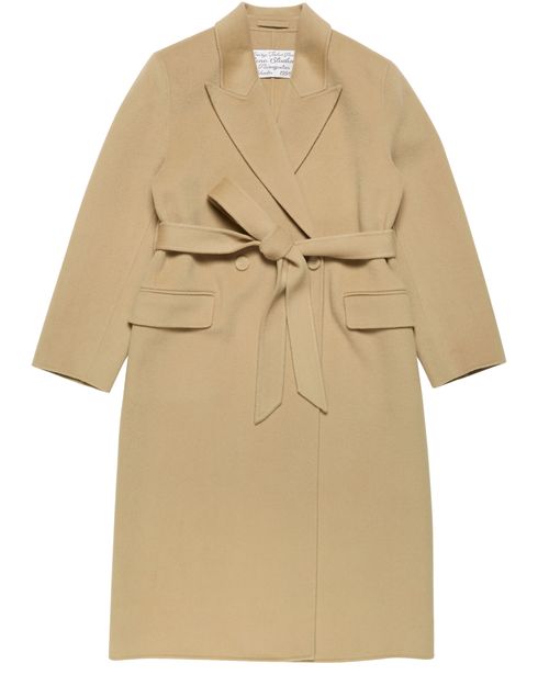 Reveal Acne Studios's long belted coat, a refined silhouette featuring a double-breasted closure and structured collar. Flap pockets and long sleeves add practical elegance, while the tailored belt defines the waist. Crafted for versatility, this coat transitions seamlessly from day to evening with modern sophistication.