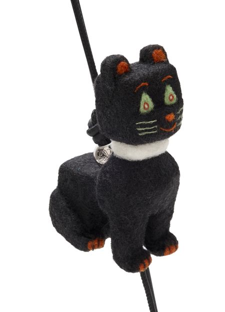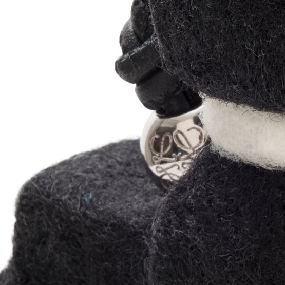 Reveal Loewe's Louis Wain felt cat bag charm, a playful accessory crafted from embroidered canvas with bead accents and a refined silver finish. The engraved logo and intricate details add a whimsical touch, making it a versatile piece for keys or as a statement bag charm.