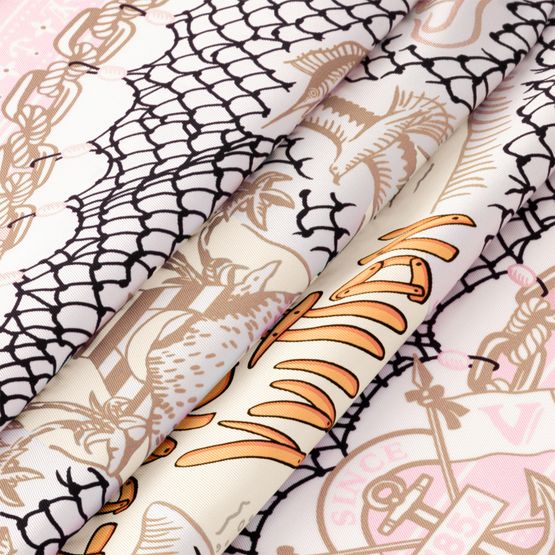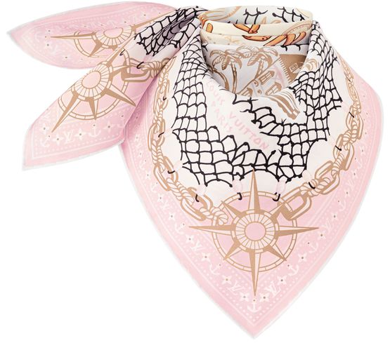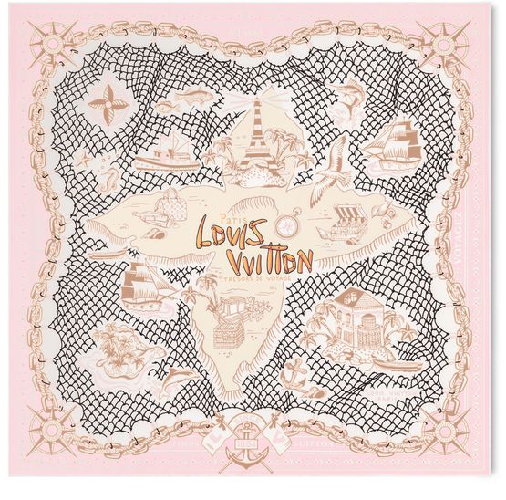 • Description : 100% silk, inkjet print, nautical motifs, louis Vuitton signature, contrasting border, hand-rolled hem.