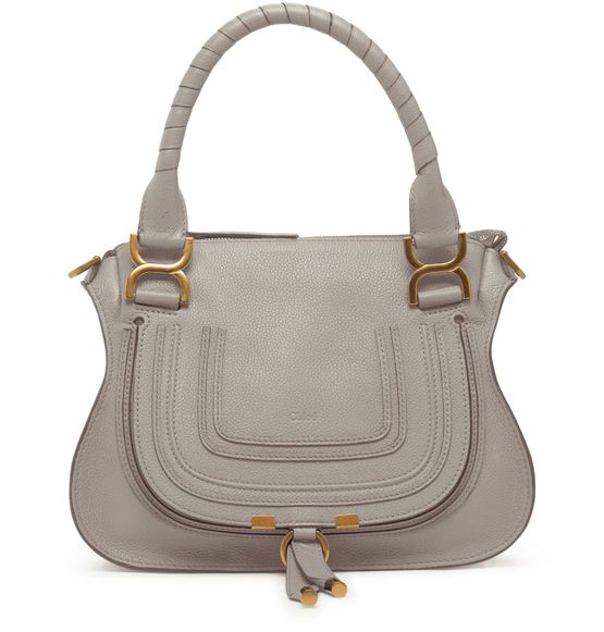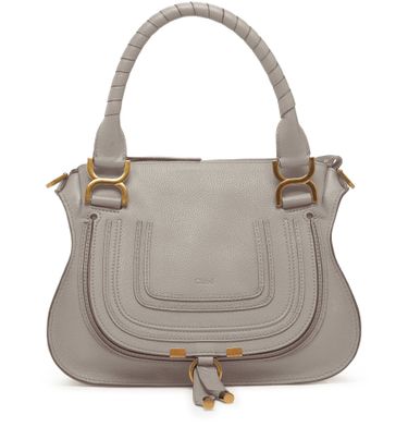 The Chloé Marcie double carry bag is crafted from grained leather and features a rolled leather handle and a slender adjustable, detachable shoulder strap. It has a zipper closure and a single compartment with a zippered interior pocket. The bag is finished with an embossed logo and gold finishes.