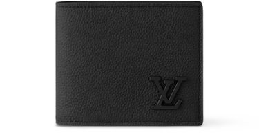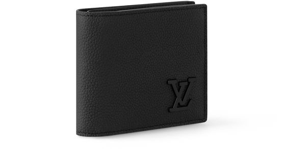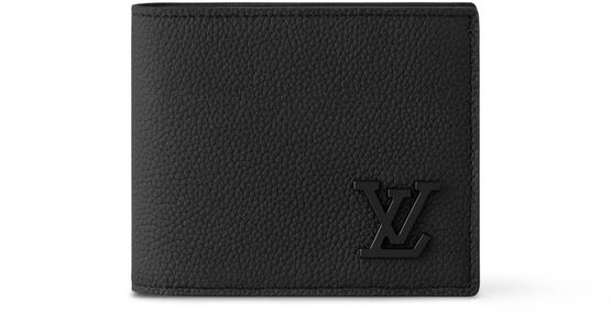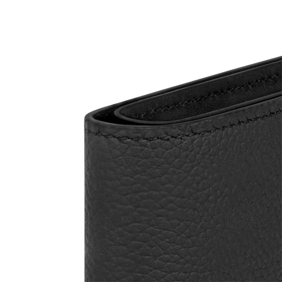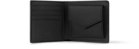 Part of the LV Aerogram Collection, this Marco Wallet is specially crafted in black leather and features clear-cut, almost architectural lines. Metallic LV Initials with straight, sharp lines sign this wallet. Two compartments for bills and a coin compartment make it practical.