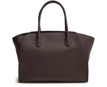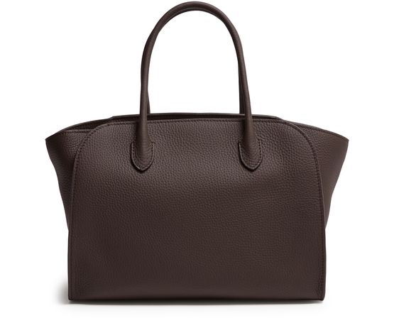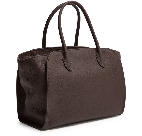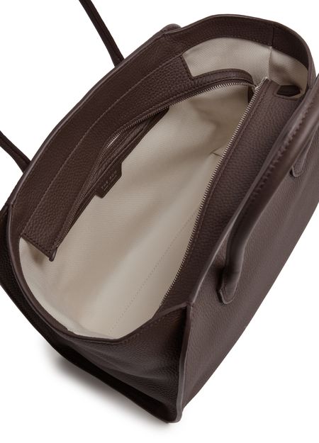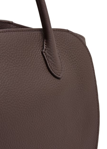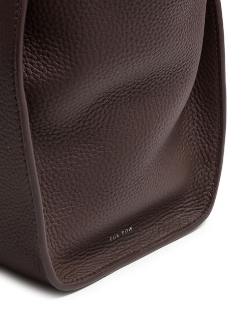 Reveal The Row's Marlo 12 tote bag, crafted from grained leather with double handles for effortless carrying. The spacious interior compartment and secure zipper closure combine practicality with refined style, while visible topstitching and an interior pocket showcase meticulous attention to detail.