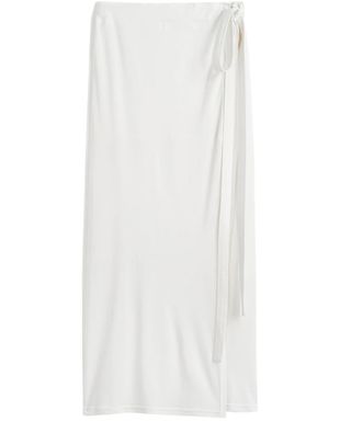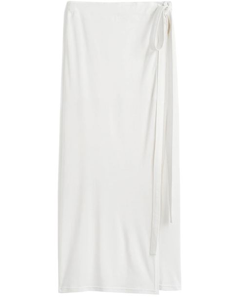 Discover Toteme's maxi skirt with tie at waist, a refined wrap silhouette crafted for effortless sophistication. The adjustable drawstring waist and bow fastening ensure a personalized fit, while the flowing maxi length brings graceful movement. Perfect for transitioning from day to evening with versatile styling options.